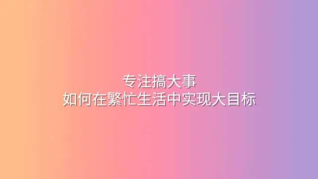 专注搞大事:如何在繁忙生活中实现大目标