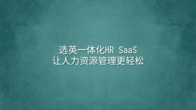 选英一体化HR SaaS:让人力资源管理更轻松