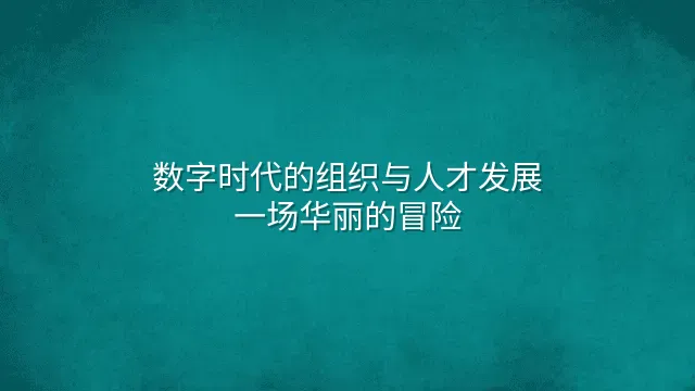 数字时代的组织与人才发展:一场华丽的冒险