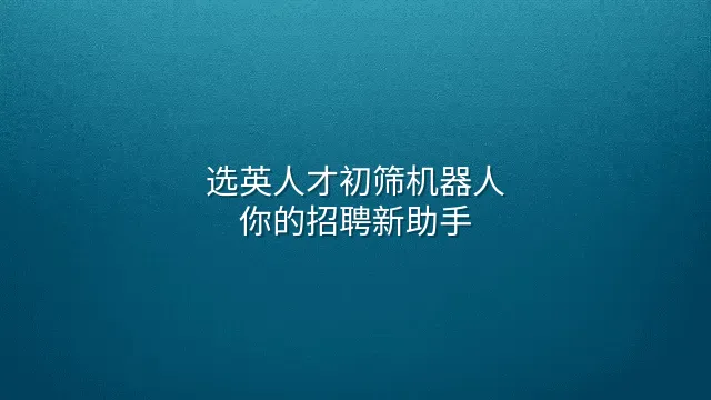 选英人才初筛机器人:你的招聘新助手