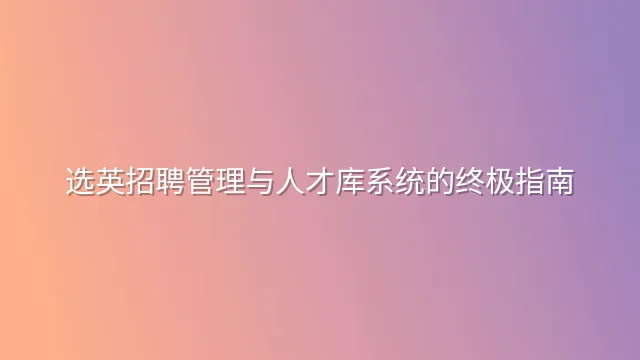 选英招聘管理与人才库系统的终极指南