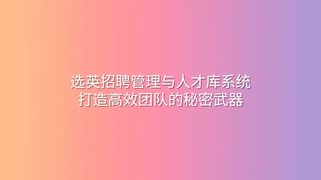 选英招聘管理与人才库系统:打造高效团队的秘密武器