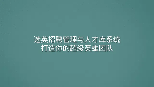 选英招聘管理与人才库系统:打造你的超级英雄团队